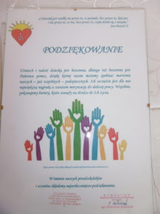 Pan dyrektor podziękował sponsorom oraz rodzicom za zaangażowanie w prace na rzecz naszych uczniów. Wszyscy goście zostali obdarowani upominkami wykonanymi przez naszych uczniów na zajęciach artystycznych.