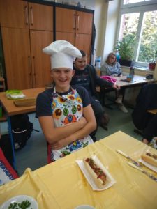 Po krótkiej prezentacji uczniowie przystąpili do zadań praktycznych. Każdy uczeń mógł wykonać swojego hot- doga z różnymi dodatkami i sosami, a następnie dokonać jego degustacji. Pod koniec zajęć oczywiście nie zabrakło pamiątkowych zdjęć.