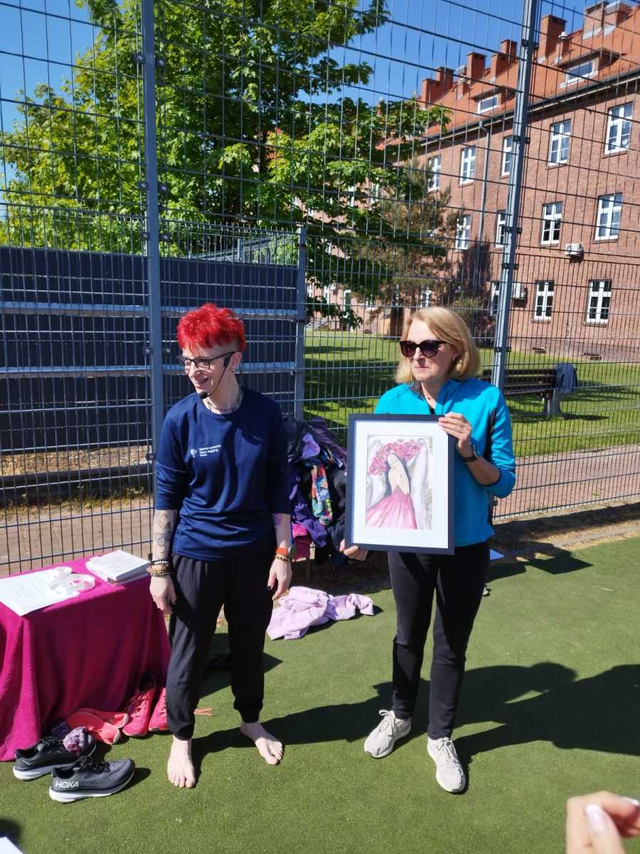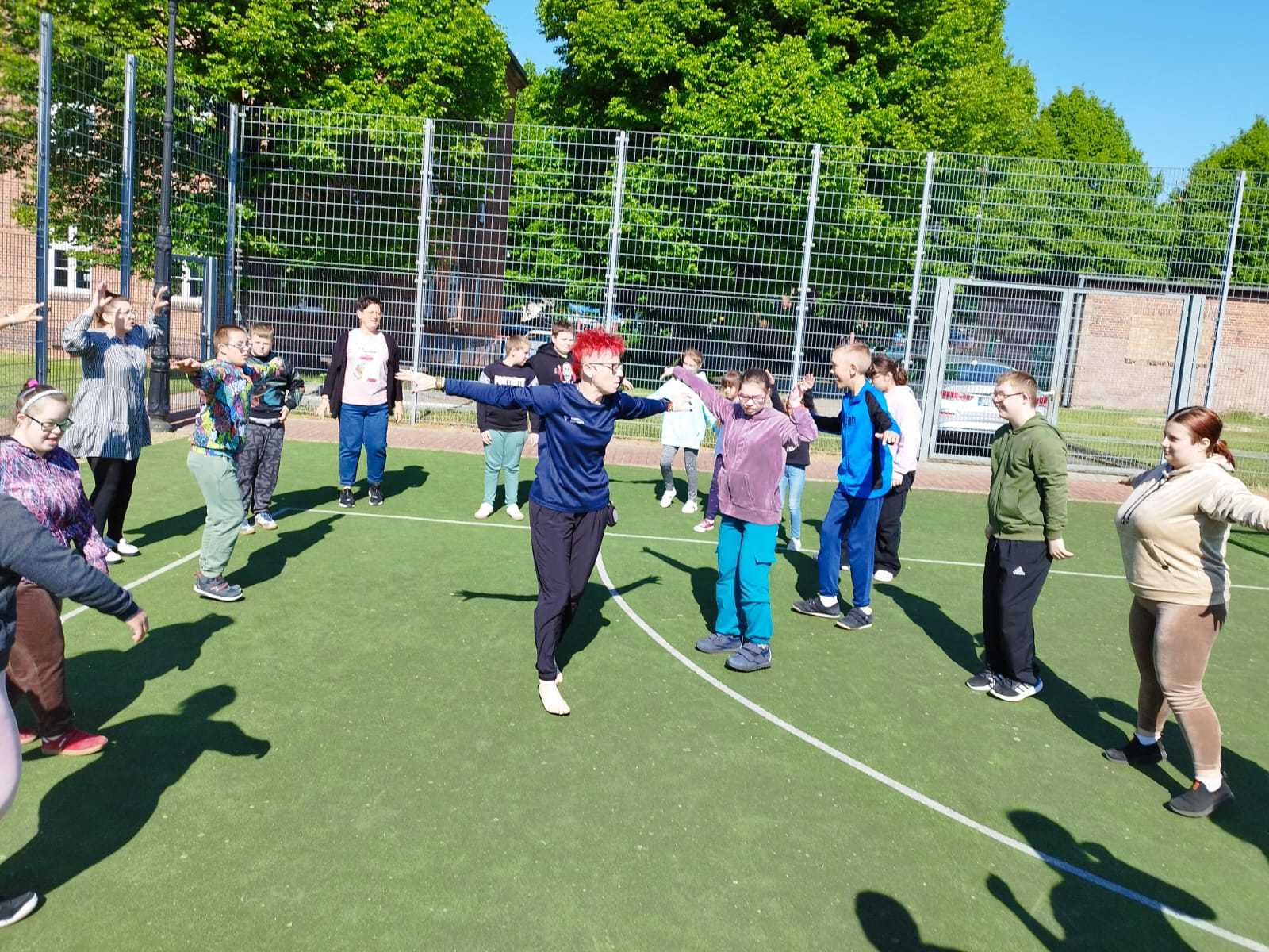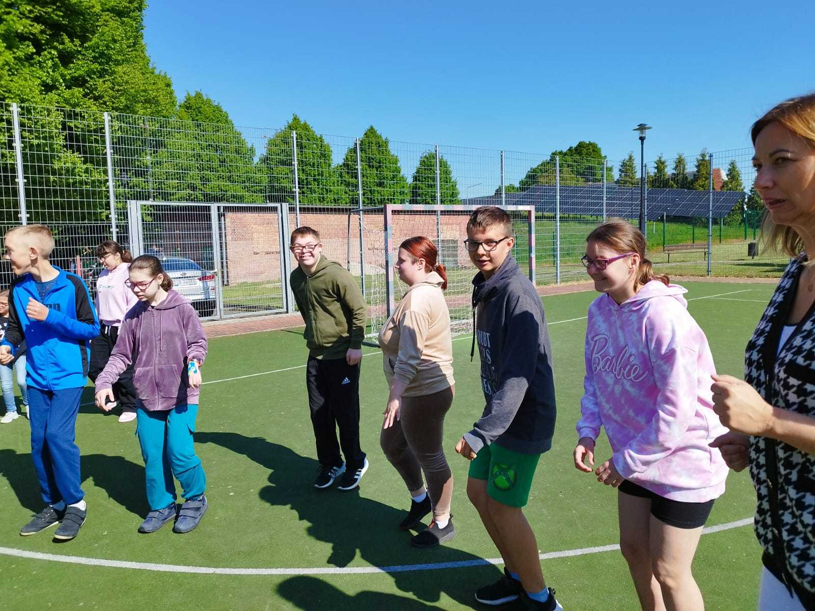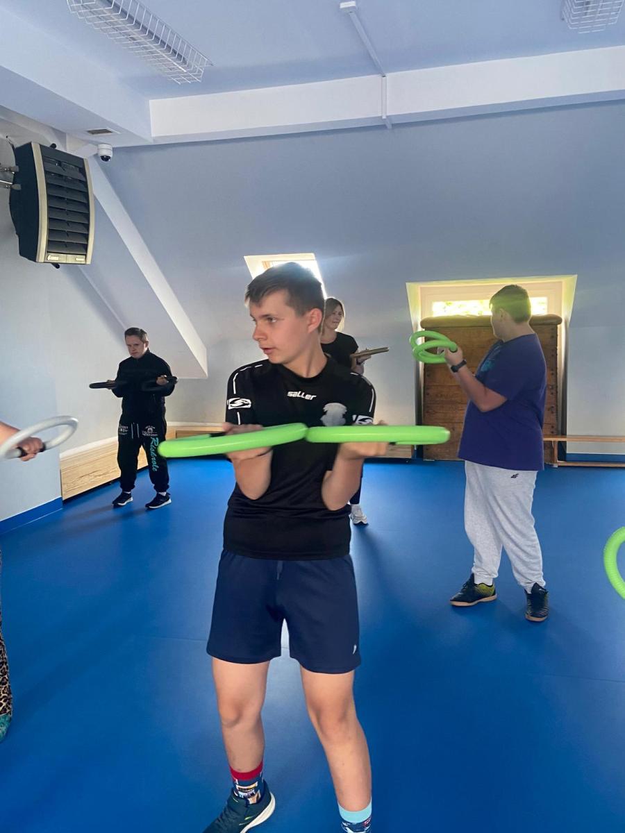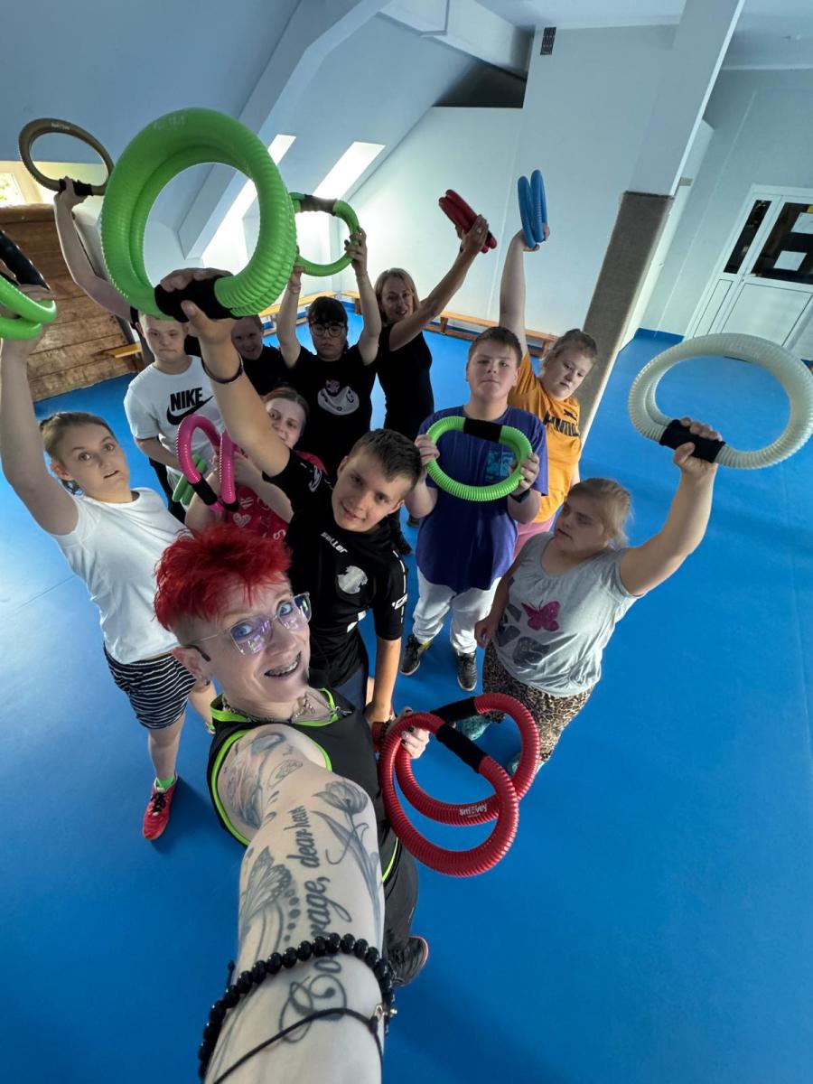 Ciekawym i inspirującym elementem innowacji były zajęcia prowadzone przez panią Annę Skibę. Uczniowie mieli okazję uczestniczyć w spotkaniu pt. „Biegnę jak ninja – lekko i cicho”, podczas którego poznali technikę Slow Joggingu – formy dostępnej dla każdego, poprawiającej kondycję i wspierającej dobre samopoczucie. Kolejne zajęcia pt. „Kręcę jak mistrz – z energią i radością” realizowane były z wykorzystaniem Smovey – specjalnych wibrujących obręczy, które rozwijają koordynację , wzmacniają mięśnie i dostarczają radości z ruchu. Za udział w tych formach wszyscy uczestnicy otrzymali, od prowadzącej zajęcia, certyfikaty za aktywny udział.